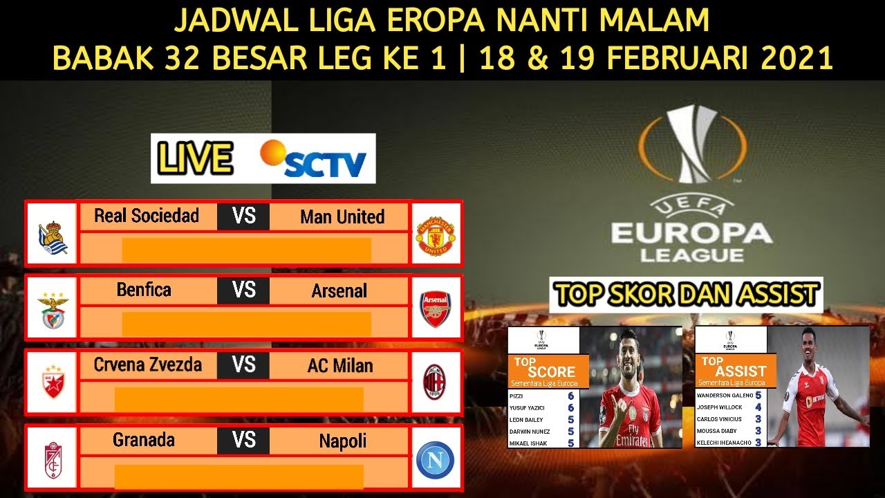 / Jadwal Europa League Sctv : Jadwal Final Liga Europa Sevilla Vs Inter Milan Disiarkan Sctv / Jumat, 26 februari 2020 00:55 arsenal vs benfica (sctv) 00:55.
